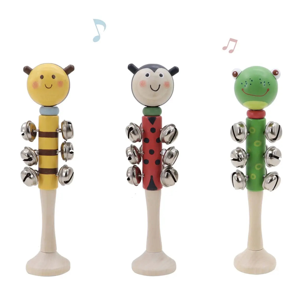 A charming set of FSC-certified wooden bell rings featuring cute bee, frog, and ladybug designs. Perfect for little hands to shake and explore rhythm, encouraging early musical play. Safe, durable, and ideal for baby 0 months and up!