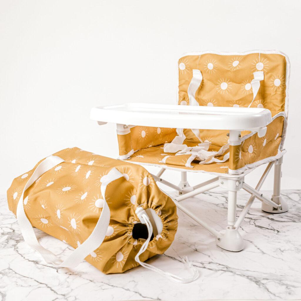 The campie chair is the perfect solution for feeding your little one on the go! Weighing just under 2kg its lightweight and easy to throw over your shoulder for on the fly.Our Campie chair is the only baby chair available in stylish patterns that comes fitted with a 5 point safety harness to meet Australian standards.