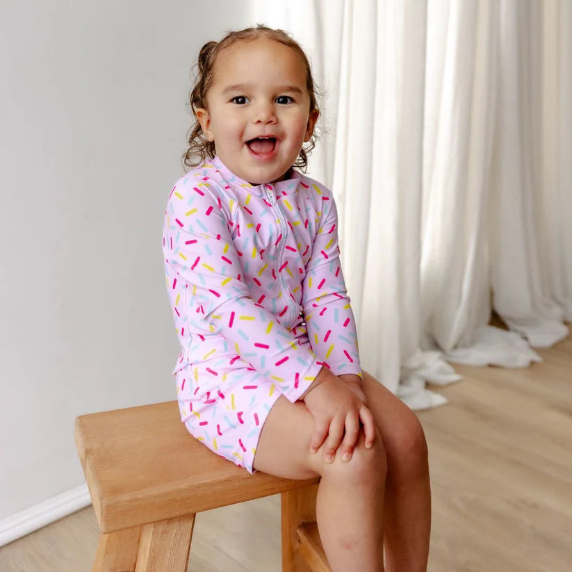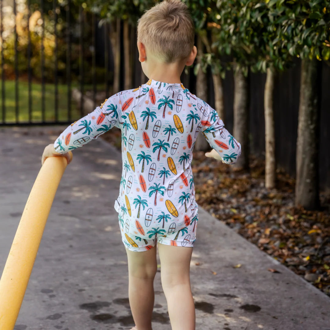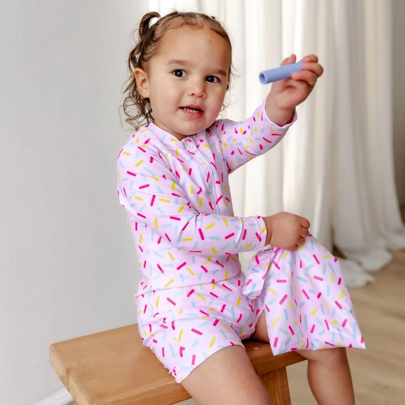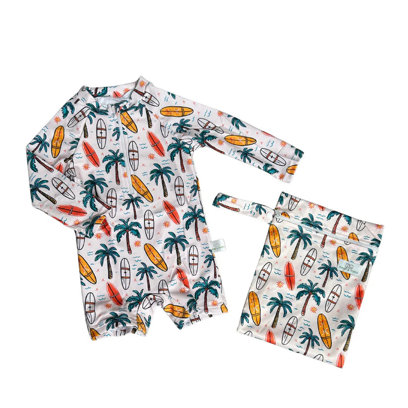 Make a splash with the Bear & Moo Emerson Swimsuit, designed for comfort, sun protection, and adorable style. Featuring a boyleg hem, full-length sleeves, and a front zip, this swimsuit keeps your little one safe and comfy for endless water fun. Plus, it comes with a matching medium wet bag – perfect for stashing wet swimmers after playtime!