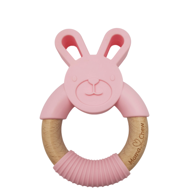 Our Bunny Teether is the perfect mixture of Certified Food Grade Silicone + Beech Wood.